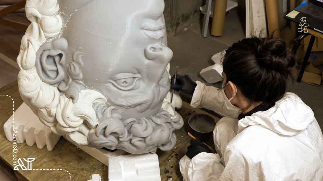 نمونه قابلتوجه دیگر، نسخه سهبعدی چاپشدهای از مجسمه معروف «داوود» میکلآنژ با ارتفاع 17 فوت (حدود 5.2 متر) است که در نمایشگاه دبی اکسپو 2020 به نمایش گذاشته شد تا گردشگری شهر فلورانس را ترویج کند. استفاده از یک چاپگر پلیمری که بتواند این نسخه را بهصورت یکتکه و با جزئیات بسیار بالا تولید کند، غیرممکن بود؛ بنابراین، مجسمه به 14 قطعه قابل چاپ تقسیم شد و سپس بهصورت دستی مونتاژ گردید. ظاهر مرمری آن از طریق یک لایه گچ دستساز حاوی گرد مرمر ایجاد شد.