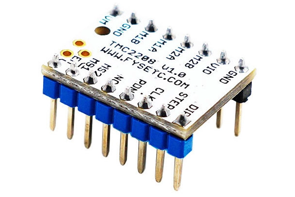 درایور TMC2208 یک تراشه (Chip) استپر موتور فوق کم صدا می باشد. درایوری با جریان آمپر بین 1.4 تا 2 آمپر، ولتاژ بین 4.75 تا 36 ولت و حداکثر تعداد میکرو استپ 256 می باشد. این مدل جدید به راحتی با مدل قدیمی به نام TMC2100 قابل تعویض است.