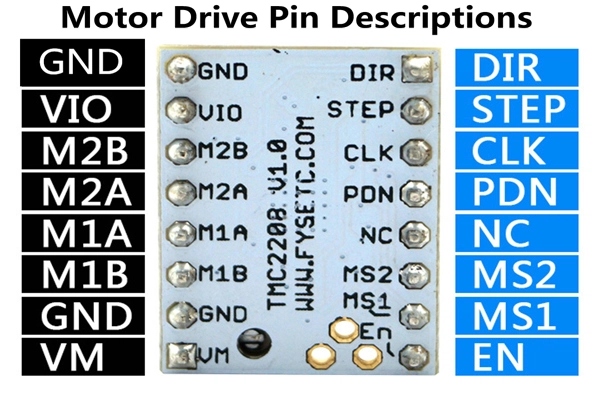 تشریح وضعیت پین های اتصال TMC2208 Motor Drive