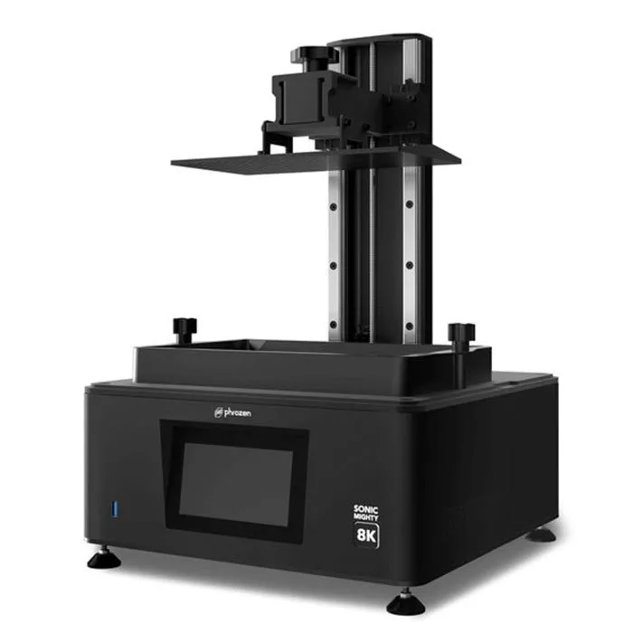 پرینتر سه بعدی رزینی Sonic Mighty 8K یک چاپگر LCD با دوام و مطمئن است که دارای محور Z دوبل با سیستم Dual Linear rails و پلیت T شکل است که عملا حرکت صفحه چاپ پرینتر را در بالاترین استاندارد کنترل و هدایت می کند. همچنین مخزن رزین پرینتر کاملا فلزی و سی ان سی کاری شده است که دوام و طول عمر بالایی دارد. سرعت چاپ پرینتر رزینی Mighty در حدود 4 برابر بیشتر از مدل های نسل قدیم چاپ LCD/SLA می باشد که این مهم بواسطه استفاده از صفحه چاپ مونوکروم می باشد و متوسط پخت هر لایه رزین استاندارد در حدود 2 ثانیه می باشد. صفحه کار پرینتر رزینی از ورژن های جدید شرکت فروزن می باشد که سطح روی کار لیزر کات شده است تا چسبندگی لایه ها افزایش پیدا کند و تضمین چاپ با کیفیت بالاتر رود و دیگر نیازی به استفاده از سمباده و پولیش نمی باشد.