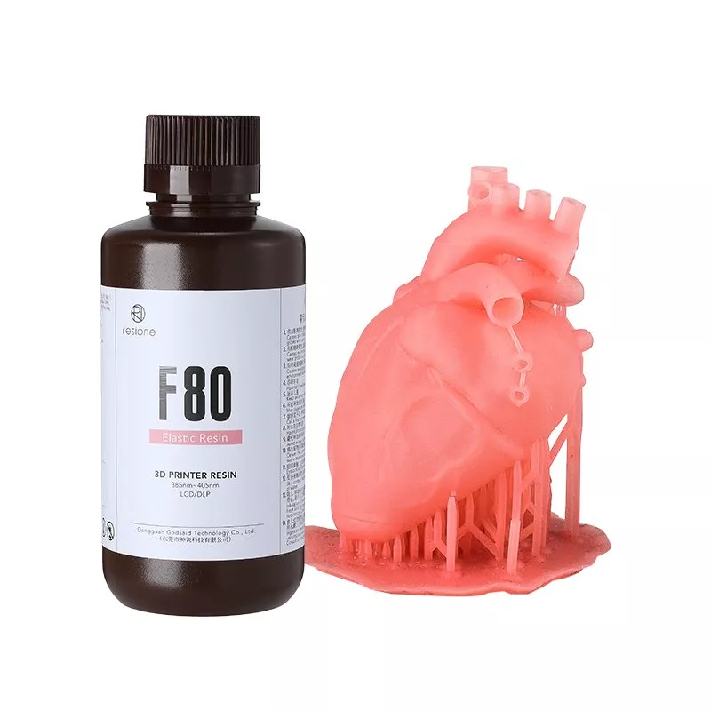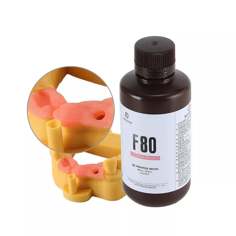 رزین منعطف F80 با بافت لاستیکی حتی در سرمای زمستان هم حالت ارتجاعی خود را حفظ می کند. این نوع رزین همانند لثه و ژل سیلیکا می باشد و در صنایع تولیدی و دندانسازی بسیار پر کاربرد می باشد.