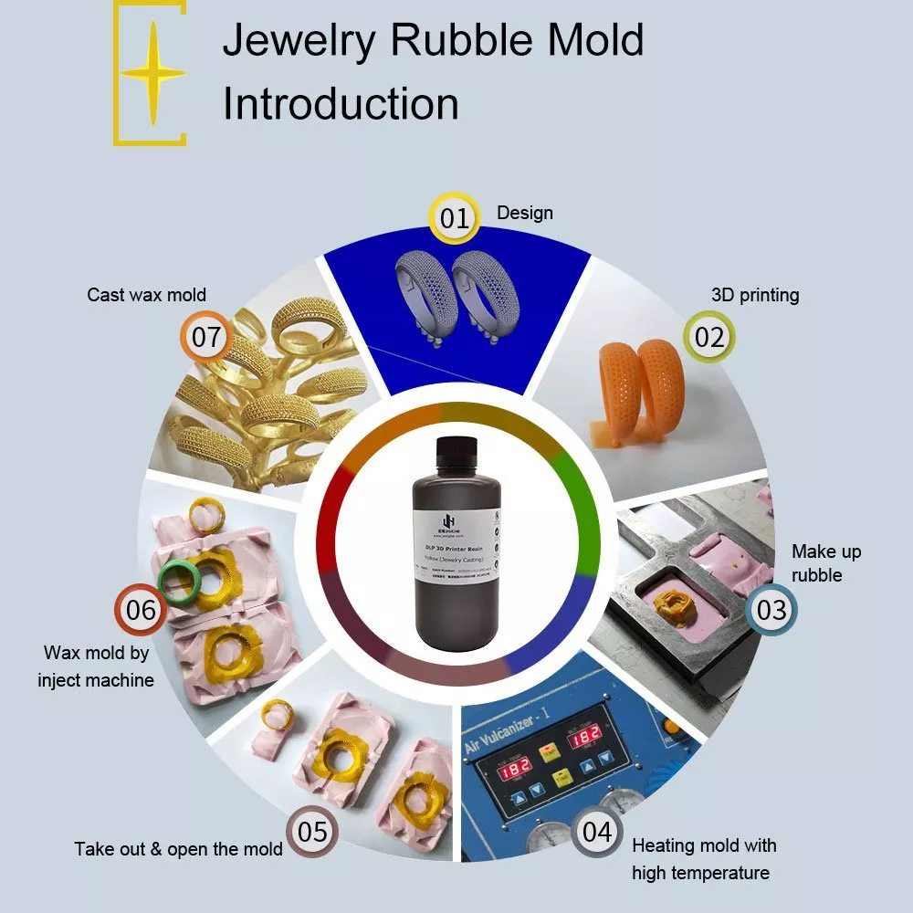 شرکت جمقه در حوزه طلا و جواهرسازی به غیر از رزین های ریختگری جواهرسازی SLA , DLP و LCD اقدام به تولید انواع رزین های قالبگیری سیلیکونی و قالب لاستیکی دما بالا کرده است. انواع رزین های کاربردی در پرینتر سه بعدی رزینی را در وبسایت آذرین جستجو نمایید.