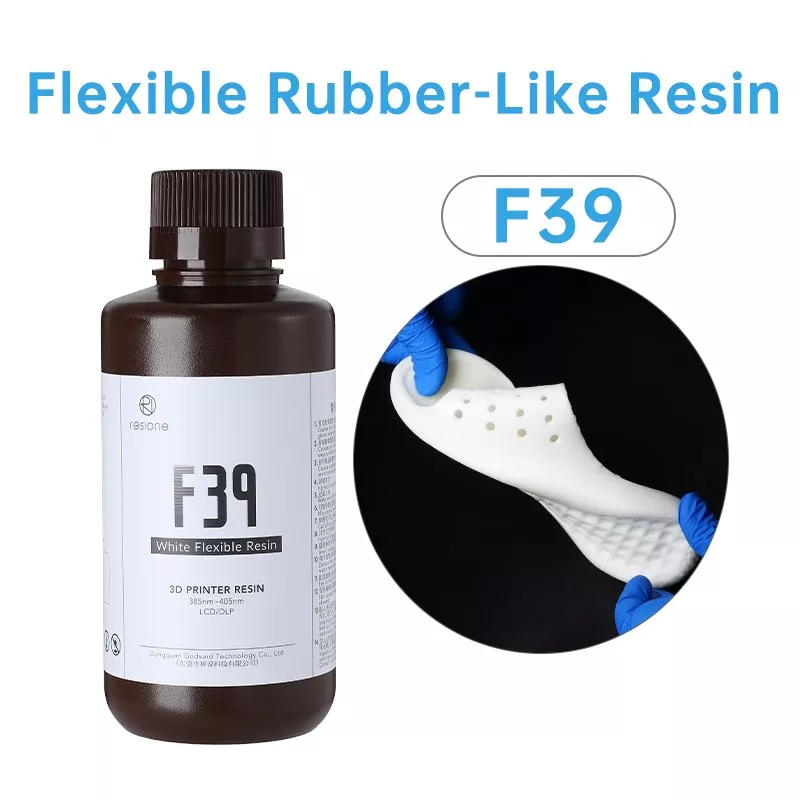 F39 is a white flexible resin.It has excellent tear strength and elongation at break, and the texture is similar to rubber