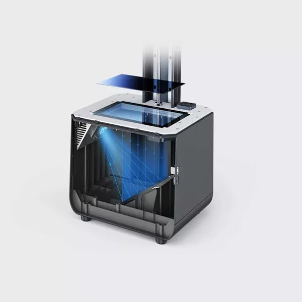 منبع نوری توسعه یافته کریلیتی دارای شدت نور 5500 میکرووات بر سانتی متر مربع است و یکنواختی چاپ را در کل صفحه ساخت تضمین می کند. این می تواند نگهدارنده های میکرو 0.1 میلی متری را برای مدل های پیچیده چاپ کند و سرعت چاپ را همراه با صفحه نمایش LCD با 7 درصد ضریب عبور نور بالا افزایش دهد. با 12 ماژول LED یکنواختی نور تا 93 درصد افزایش یافته است.
