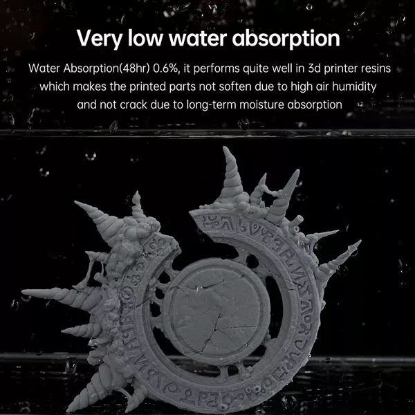 - جذب آب رزین TH72 در 48ساعت معادل 0.06% است که باعث میشود مدل پرینت شده به خاطر جذب رطوبت ترک نخورد.