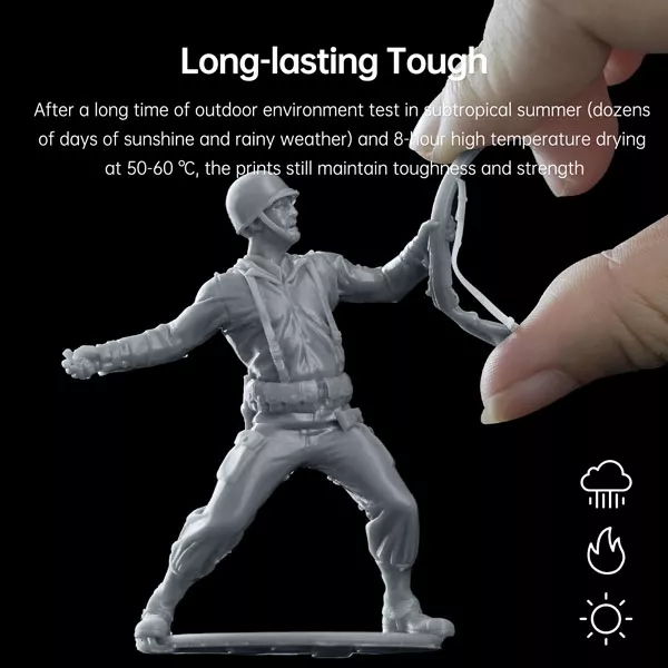 - مدل های چاپ شده با رزین TH72 به مرور زمان شکننده نمی شوند. پس از مدت طولانی در فضای باز در تابستان نیمه گرمسیری و خشک شدن 8 ساعته در دمای بالا در دمای 50-60 ℃، پرینت ها همچنان چقرمگی و استحکام خودراحفظ می کنندو مقاومت خوبی در برابر آب و هوا از خود نشان میدهند.