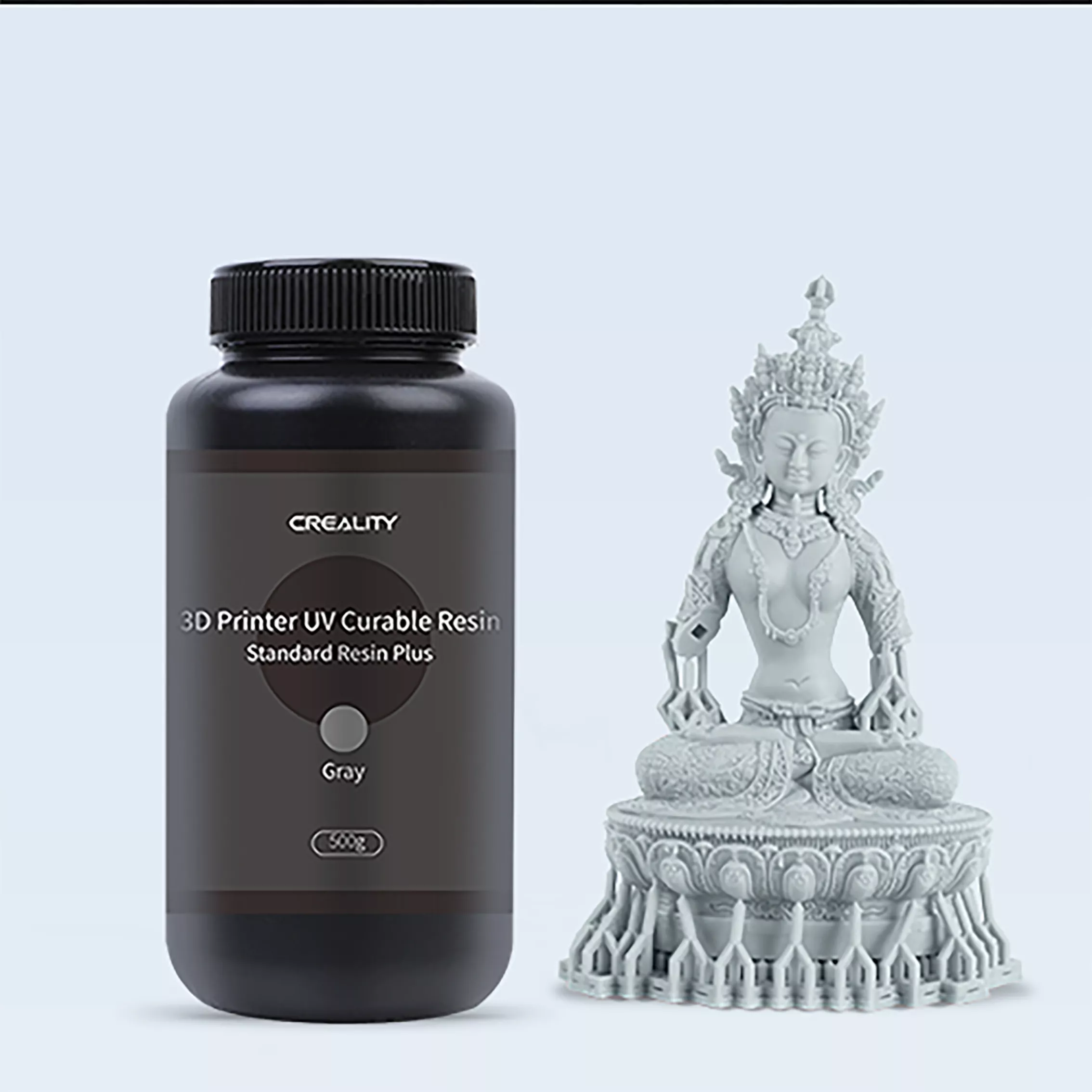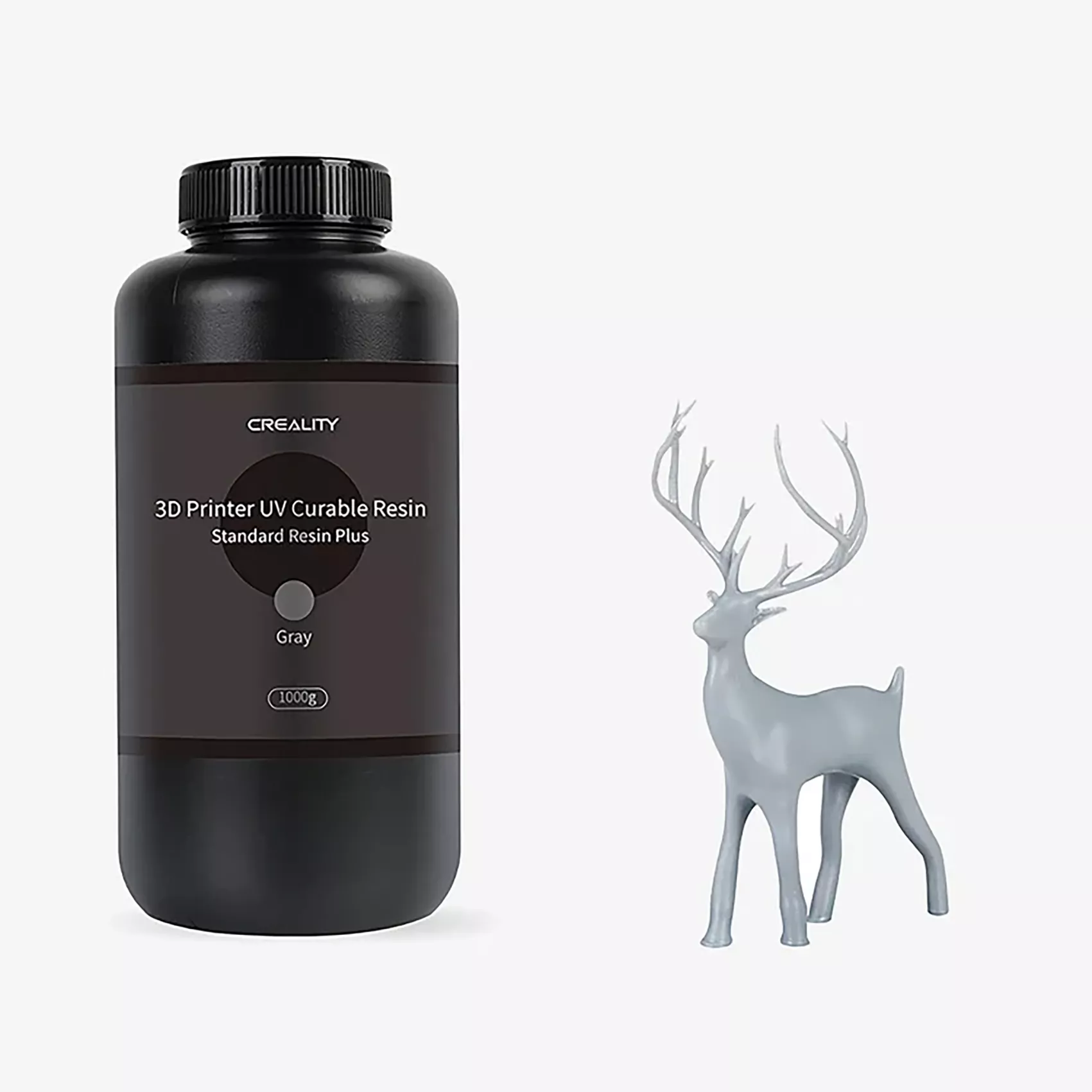 یکی از بهترین و جدیدترین رزین های شرکت کریلیتی از نوع رزین استاندارد با نام standard plus است که با توجه به سرعت بالای چاپ و پخت آن با دقت بالا و کیفیت سطح زبانزد توانسته راندمان بالایی را برای کاربران به ارمغان آورده و به یکی از بهترین و مقرون به صرفه ترین رزین های استاندارد بازار تبدیل شود.از دیگر ویژگی های رزین استاندارد پلاس شرکت کریلیتی سازگاری وکاربرد گسترده Creality Standard Resin Plus با اکثر چاپگرهای LCD/DLP سه بعدی موجود در بازار است که می تواند در زمینه های مختلفی مانند کارتون، دکوراسیون منزل، آموزش، معماری و غیره استفاده شود.رزین استاندارد پلاس با طول موج قابل اجرا 405 نانومتر برای چاپگرهای سه بعدی LCD/DLP با انقباض کم و دقت بالا است. رزین Creality یک ماده مایع ساخته شده از پلیمرهای ترموست است که با اشعه ماوراء بنفش از طریق فتوپلیمریزاسیون جامد یا سخت می شودکه این فرایند موجب کاهش نرخ انقباض در فرآیند فوتوپلیمریزاسیون در چاپگرهای LCD/DLP 3D می شود.