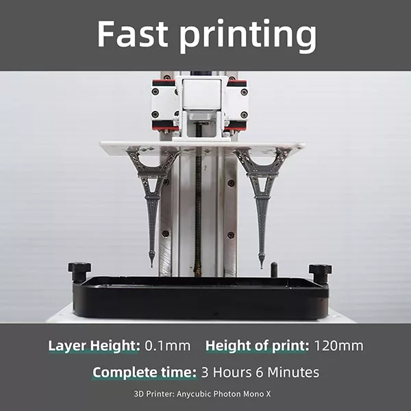 رزین سختEC51 دارای سرعت پخت بالا است و از چاپ با ضخامت لایه 0.2 میلی متر پشتیبانی می کند. اگرزمان چاپ برای شما اهمیت بیشتری نسبت به کیفیت سطح داشته باشد میتوان زمان کمتری را برای چاپ تنظیم کردو زمان چاپ همان مدل با ضخامت لایه 0.2 میلی متر، 1/4 ~ 1/3 زمان چاپ سایر رزین ها با ضخامت لایه 0.05 میلی متر میشود.در مقایسه با سایر رزین های استاندارد رزین سخت EC51 دارای استحکام کششی بالا میباشدو همچنین از مقاومت خمشی، ضریب شکست و مقاومت ضربه ای خوب و متعادلی برخوردار است. این رزین در رنگهای سفید و خاکستری در وبسایت آذرین موجود میباشد.