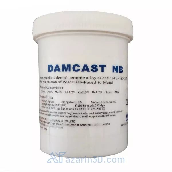 DAMCAST NB Damcast NB is a high strength nickel chrome with beryllium alloy whuch is used for dental ceramic restorations |