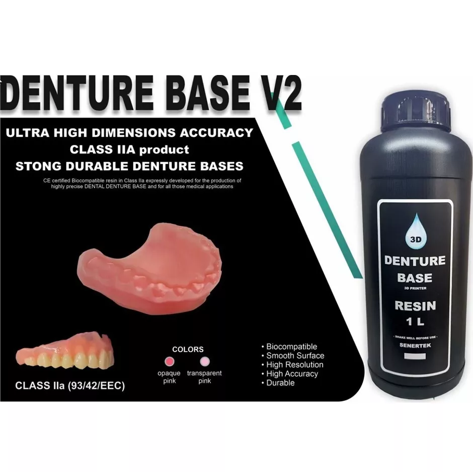 رزین senertek denture base v2 رزین بیوپزشکی محصول کشور ترکیه است که دارای گواهینامه CE می باشد. این رزین کیفیت سخت با کیفیت سطح بالا می باشد.این رزین یک محصول ایده آل برای ساخت پایه های دندان مصنوعی کامل میباشد که رنگ فوق العاده ای داردو میزان شرینک آن بسیار کم است.نکته جالب در مورد این رزین عدم نیاز به تکان دادن قبل از چاپ میباشد زیرا در این رزین رنگدانه ها ته نشین نمیشوند.نکته حائز اهمیت در مورد رزین های بیوپزشکی سنرتک عدم نیاز به uv (cure) و مرحله پست پروسسینگ است. رزین دندانسازی سنرتک با انواع پرینترهای سه بعدی رزینی LCD,DLP سازگار است. طول موج مورد نیاز برای این رزین 385-405 نانومتر است.