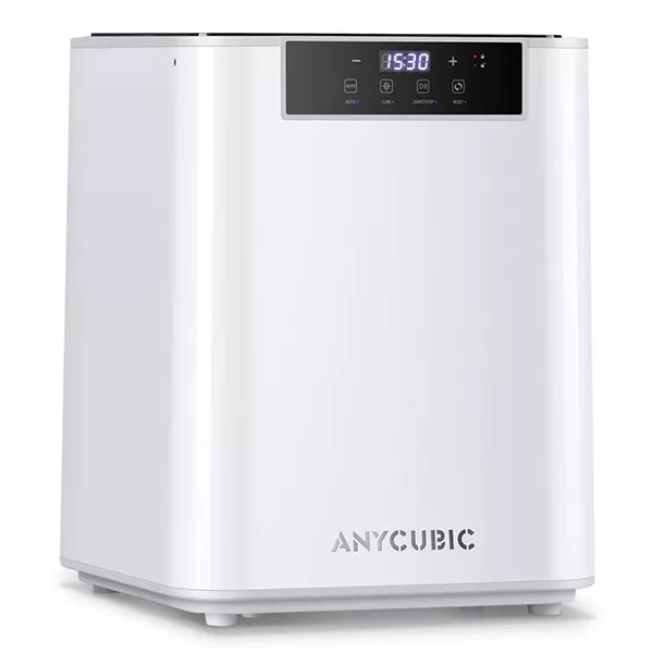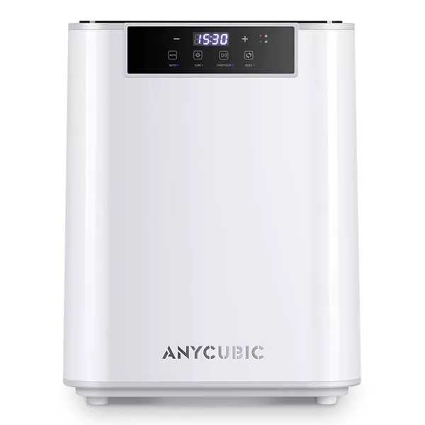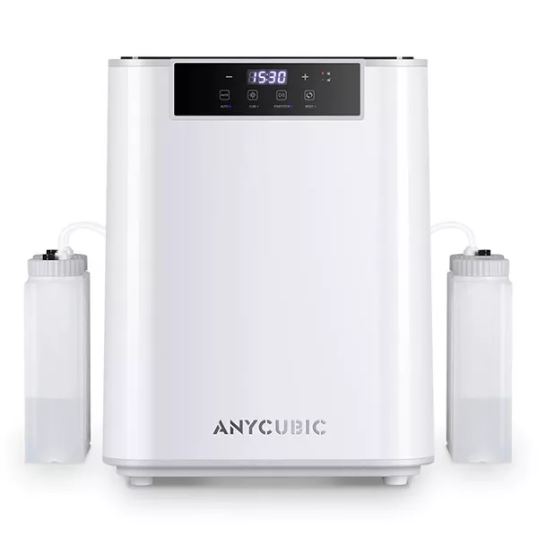 دستگاه دومنظوره شستشو و خشک کن انیکیوبیک مدل max دستگاه بزرگ سایز با حجم 14.9 لیتر است که با اکثر پرینترهای سه بعدی رزینی سازگار است. سایز این دستگاه 300x165x300 میلیمتر میباشد.مکانیزم این دستگاه برای شستشو در دوحالت همزمان انجام میشود به طوری ک با اسپری کردن الکل روی مدل و غوطه ورکردن آن در الکل به طور کامل رزین های باقی مانده روی سطح را پاک میکند. این دستگاه با داشتن یک پلت فرم پخت چرخشی خودکار 360 درجه فرآیند cure را به درستی انجام میدهد.