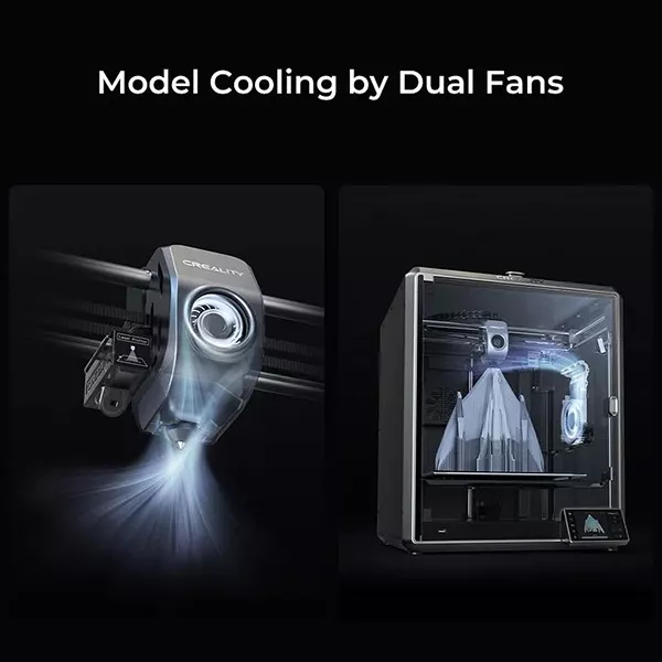 پرینتر کریلیتی مدل k1 max مجهز به نمایشگر 4.3 اینچی لمسی رنگی است که رابط کاربری آسانی دارد.این پرینتر دارای اکسترودر Dual-gear direct drive و نازل از جنس آلیاژ تیتانیوم میباشد که جریان تغذیه کامل 32 میلی متر در ثانیه را تا دمای 300 درجه سانتیگراد تضمین می کند.در فرآیند پرینت مدل چاپ شده به سرعت توسط دو فن خنک می شود که باعث جلوگیری در تاب خوردگی رشته ها میشود.پرینتر k1 max مجهز به یک پلیت پرینتر با قابلیت تنظیم هوشمند دما در دامنه 0 تا 100 درجه سانتیگراد بسته به نوع متریال است که دارای روکش مغناطیسی برای راحت جدا کردن مدل از روی پلیت میباشد.