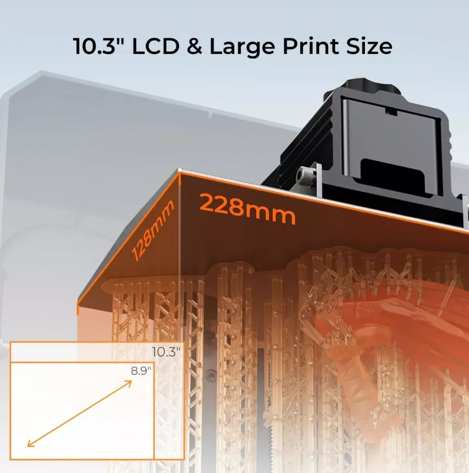 Halot-Mage دارای یک صفحه نمایش LCD بزرگ با ابعاد چاپ 228x128x230 میلی متر میباشد که دارای 33,177,600 پیکسل و وضوح 29.7 میکرومتر XY است.این پرینتر دارای منبع نور یکپارچه با شدت نور (μW/cm²) 5000±10% است و نور را در همه ی نقاط به صورت یکسان توزیع میکند.در پرینتر halot mage برای تشکیل یک لایه فقط 1-5 ثانیه با طول موج 405 نانومتر نیاز است که این موضوع به طور چشمگیری در کارایی و بهره وری پرینت شما موثر است. محور Z هالوت مگ دارای سیستم خطی با دو ریل راهنما میباشد که لرزش را کاهش داده و باعث موفقیت چاپ در مدل های بزرگتر میشود.