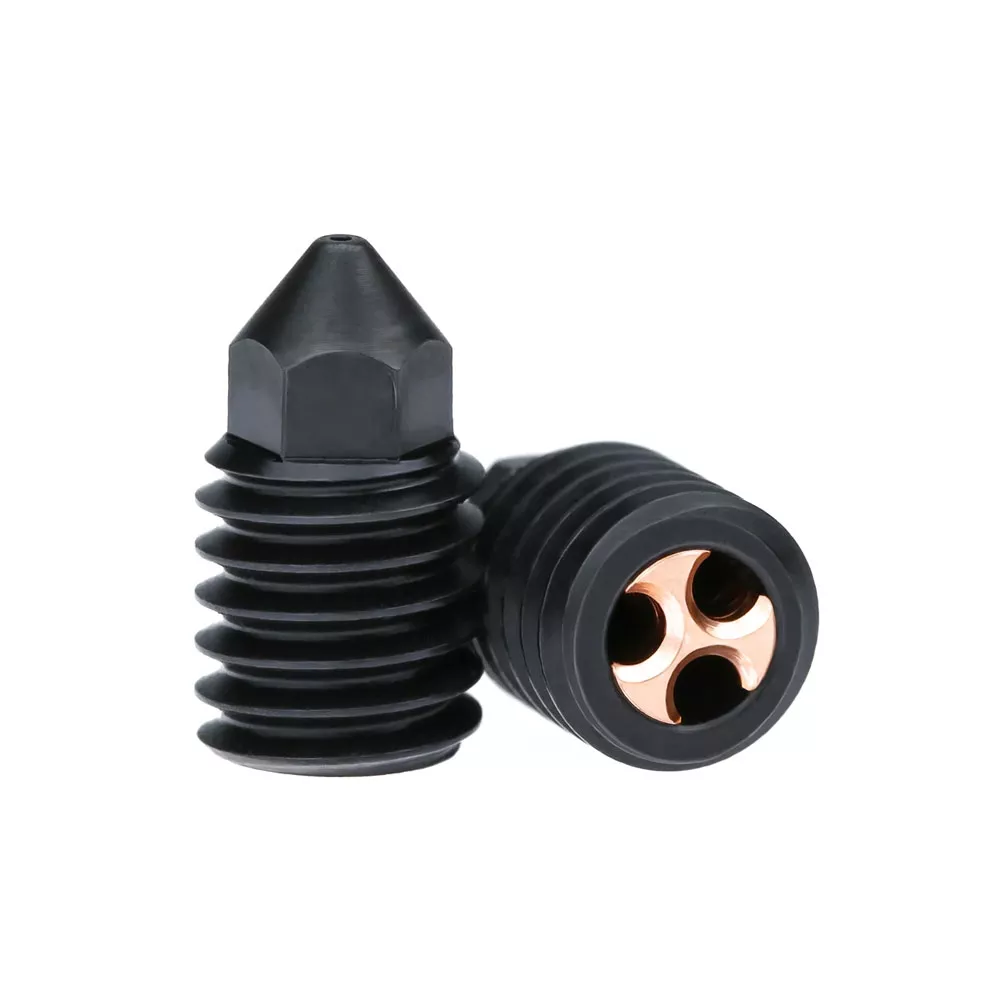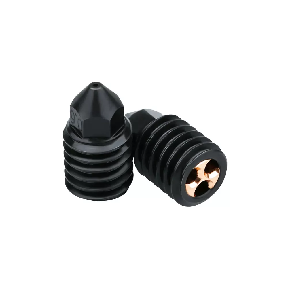 نازل استیل سخت شده جریان بالا 0.6 میلی متر عضو خانواده CHT شرکت Bondtech برای پشتیبانی از نرخ تزریق بالای فیلامنت طراحی و تولید شده اند. محصول پیش روی شما از همین خانواده برای پرینترهای سه بعدی X1/X1C/P1P/ P1S برند بامبولب ساخته شده است. نازل 0.6 میلی متری شرکت بامبو لب دارای سه حفره داخلی است که در مقایسه با مدل های معمولی این شرکت دو برابر سرعت دارد و کیفیت چاپ بالایی را تضمین می کند. نازل استیل سخت شده جریان بالا فیلامنت های با قطر 1.75 تا 3 میلی متر را پشتیبانی می کند. نازل 0.6میلی متری CHT از فولاد سخت شده، مس، زیرکونیوم و کروم ساخته شده است که بواسطه این متریال دارای هدایت حرارتی بالا و مقاوم به سایش خوبی است.