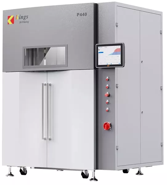 پرینتر سه بعدی P440 با استفاده از یک محفظه گرم دما را تا 190 درجه سانتیگراد حفظ میکند و با کمک سیستم کنترل دما خطر تغییر شکل قطعه چاپ شده را کاهش می دهد. پرینتر سه بعدی Kings P440 SLS از پودرهای نایلون مانند GFPA12 و GFPA12GF تقویتشده با الیاف شیشه استفاده میکند که دارای استحکام و مقاومت حرارتی بالایی هستند. به واسطه سیستم تغذیه اتوماتیک مواد با حفظ کیفیت، با توجه به هر پروژه کنترل و مصرف می شود. پرینتر Kings P440 دارای یک سیلندر صفحه بزرگ به ابعاد 440x 440 x 450 ( میلیمتر) است. چاپگر کینگ قادر است تا 5 کیلوگرم پودر را در یک روز پردازش کند و زمان چرخه تولید و هزینه هر قطعه را کاهش دهد.