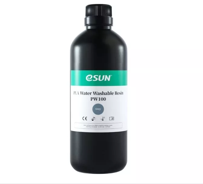 رزین قابل شستشو با آب PLA PW100 از برند eSUN یک رزین زیستی (bio-based) است که با آب قابل شستوشو بوده و دارای استحکام بالا و سختی 81D در مقیاس (Shore) است. مدلهایی که با استفاده از این رزین چاپ میشوند، میتوانند به سادگی با آب شیر شسته شوند و نیازی به استفاده از الکل یا دیگر مواد شیمیایی برای فرآیند تمیز کردن ندارند.