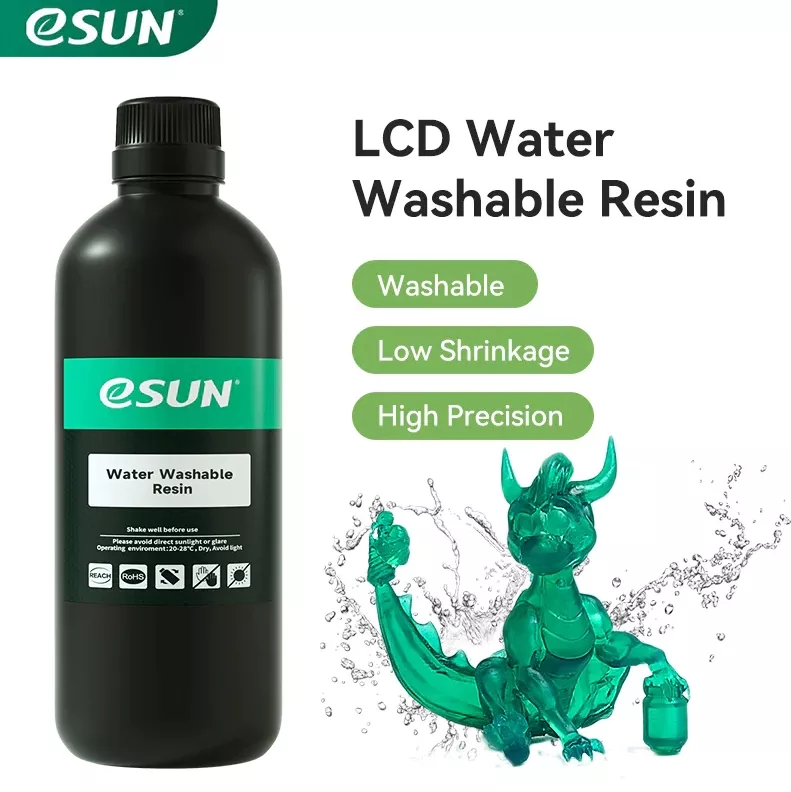 رزین eSUN water washable با دقت بالا و انقباض کم حاوی مونومرهای آکریلات است که باعث کاهش انقباض حجمی در طول فرآیند فوتوکورینگ می شود که دقت بالای مدل چاپ را با روکش صاف تضمین می کند.سیالیت عالی و پایداری بالا در رزین UV ایسان باعث استحکام قطعات قالبگیری شده و عدم انقباض بیش از حد را تضمین میکندکه سرعت چاپ را بهبود میبخشدو زمان پخت را کوتاه میکند در نتیجه راندمان چاپ ماشینهای LCD را افزایش میدهد.همچنین این رزین دارای بوی کم است و تمیز کردن آن بسیار اسان است ک آن را به رزینی ایده آل برای نمونه سازی سریع با اسباب بازی ها، هنر و صنایع دستی، ابزارهای خانگی یا ساخت جواهرات تبدیل کرده است.