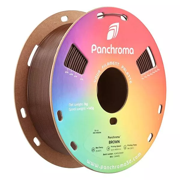 - بستهبندی باکیفیت: فیلامنت 1.75 میلیمتری Panchroma، خشکشده و در کیسه زیپدار با ماده رطوبتگیر بستهبندی شده تا از گرهخوردگی و رطوبت جلوگیری شود. قرقره مقوایی بازیافتی با لبههای تقویتشده، دوام و پایداری فیلامنت را تضمین میکند.