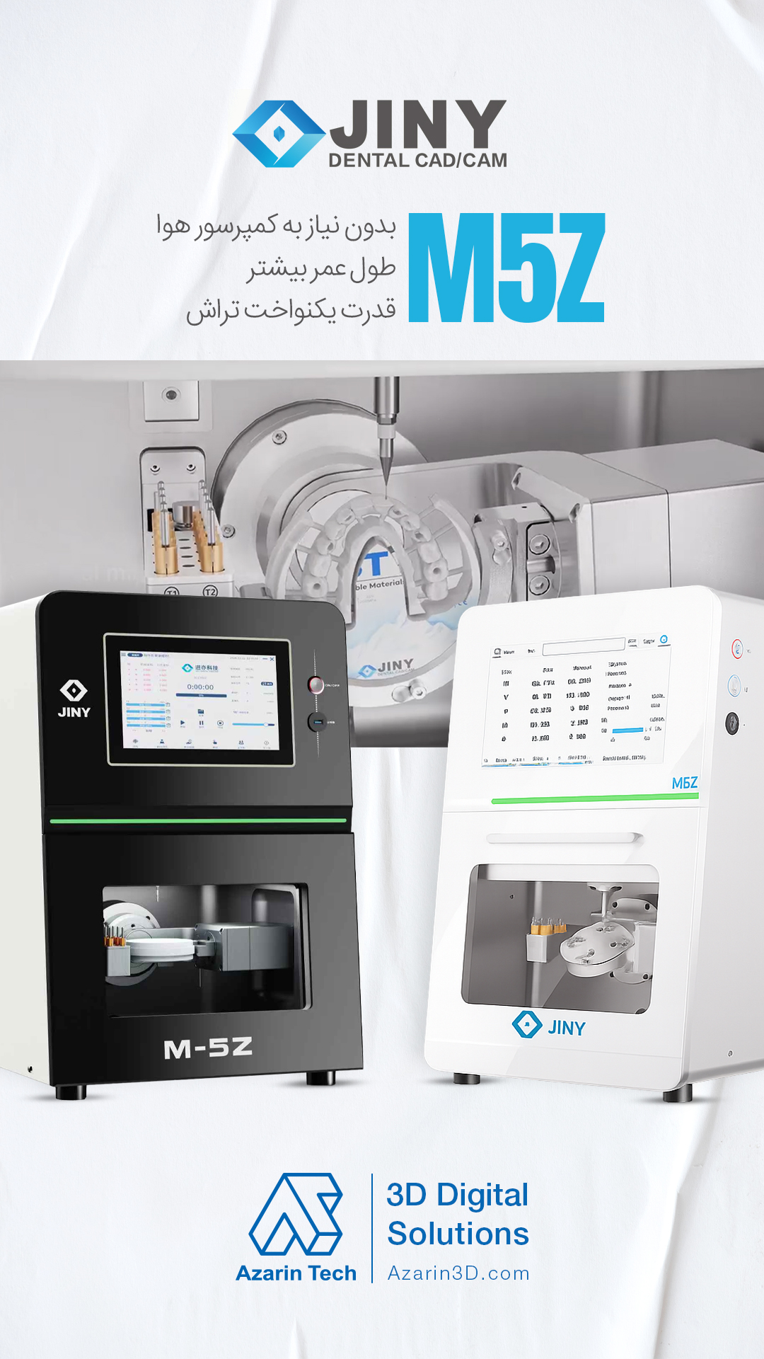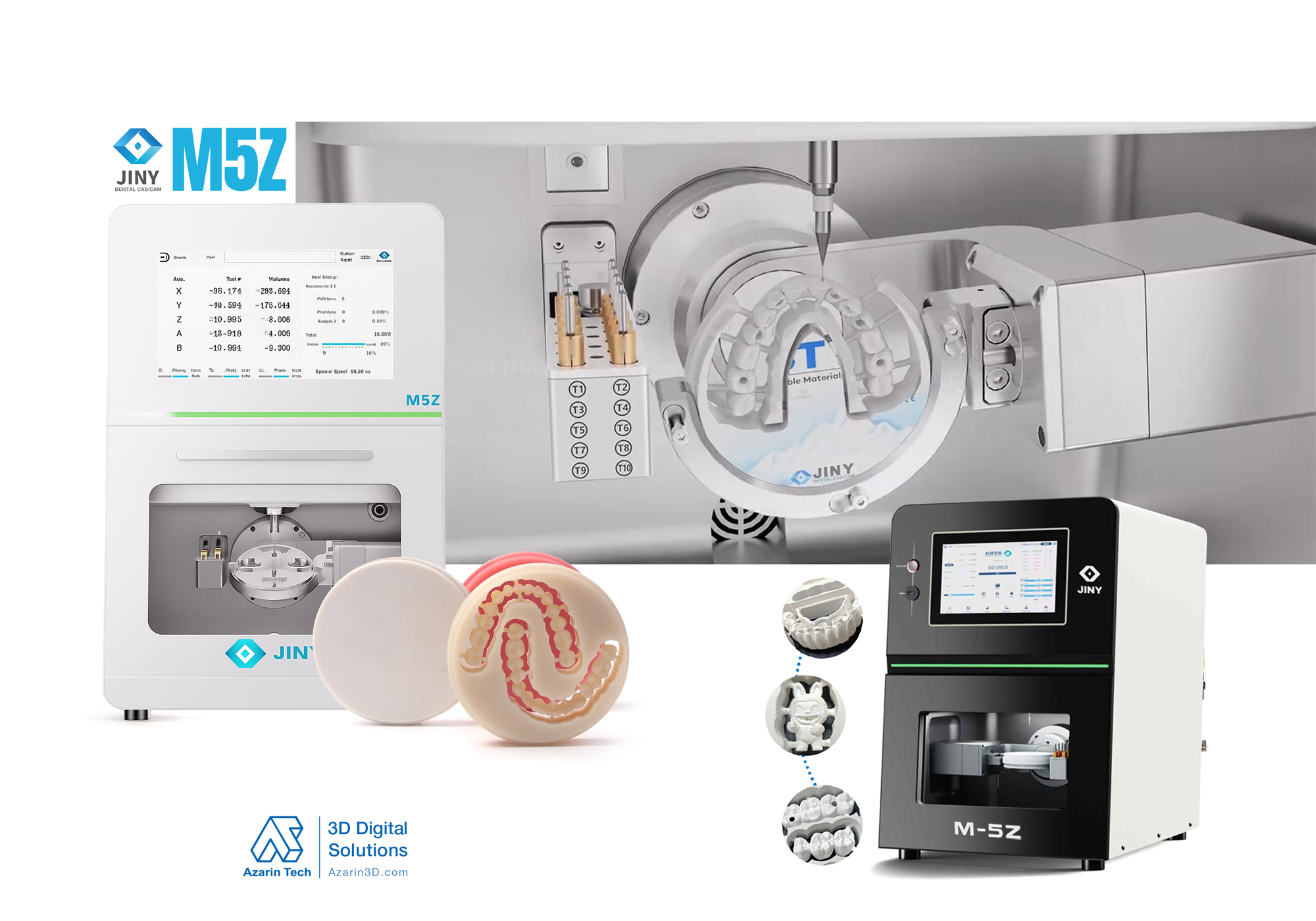 میلینگ پنجمحوره مدل M5Z با طراحی مدرن، مشخصات فنی پیشرفته، سهولت در کاربری و ساختاری مستحکم، انتخابی ایدهآل برای لابراتوارهای دندانسازی حرفهای است. این دستگاه با تلفیق دقت بالا، سرعت تولید مناسب و دوام مکانیکی، امکان ساخت انواع ترمیمهای دقیق را فراهم میسازد و فرآیند تولید در لابراتوار را بهصورت چشمگیری بهینه میکند. مدل M5Z با گارانتی رسمی آذرین در ایران عرضه میشود و تمامی مراحل نصب، راهاندازی و آموزش کامل دستگاه، توسط تیم فنی متخصص آذرین انجام و پشتیبانی میشود.